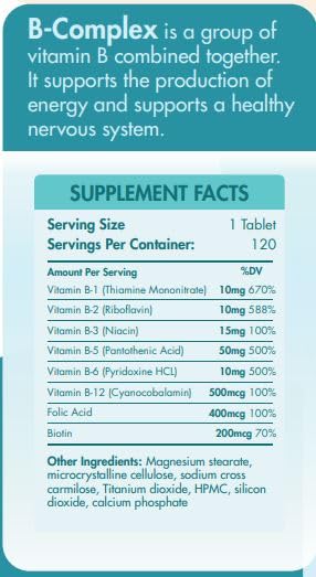 Organic Nation's B-Complex Vitamin is composed of eight water-soluble vitamins: thiamine, riboflavin, niacin, pantothenic acid, pyridoxine, biotin, folic acid, and cobalamins. These B-complex vitamins, naturally sourced from nutritional yeast, eggs, vegetables, and meat, assist the body in performing its functions, such as nutrient transportation.